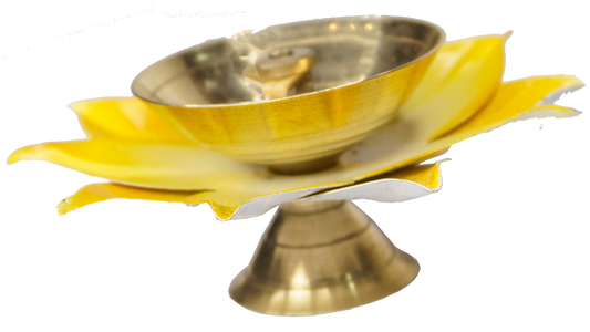 Yellow Brass Lotus Diya (3 Inch) - Traditional Pooja Lamp