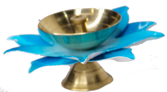 Blue Brass Lotus Diya (3 Inch) - Traditional Pooja Lamp