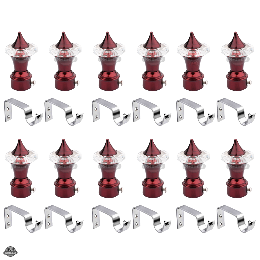 Add a touch of vibrant elegance to your window treatments with the Maroon Crystal Curtain Bracket. Designed to fit a 1-inch curtain rod, this complete set features a beautiful maroon-finished base paired with a faceted, clear crystal finial. The included stainless steel supports are built for durability and provide a secure, long-lasting hold for your curtains. This bracket's striking design is perfect for adding a pop of color and sophistication to your living room, bedroom, or any space that needs a stylish upgrade.