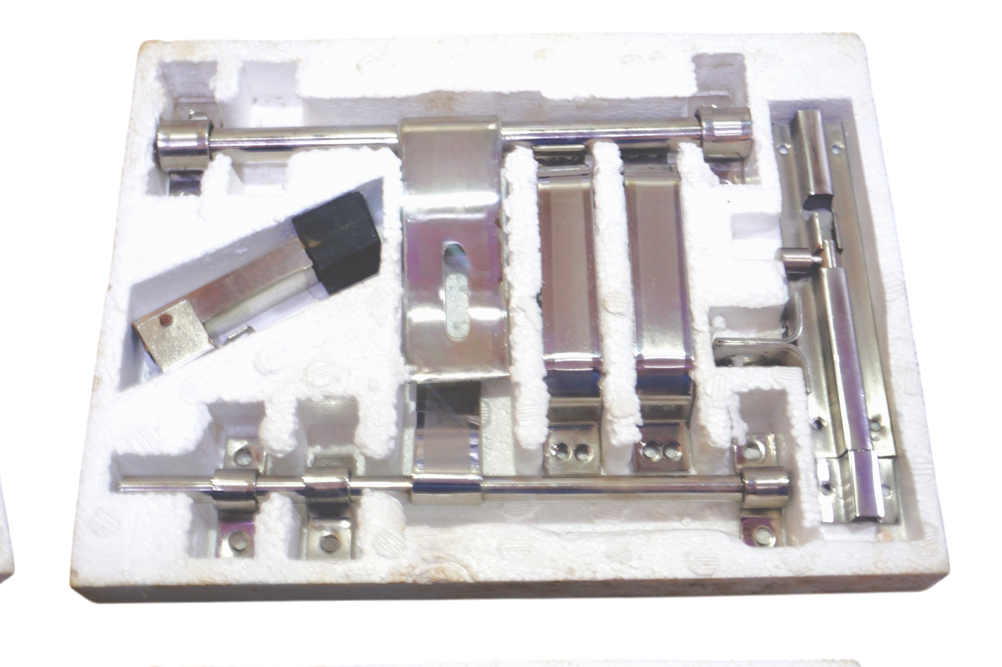 This 10-inch, 2mm thick aldrop door kit is a robust and reliable solution for securing your home. It includes a 9mm latch for added security, stylish steel finish hexa handles for a modern look, a door stopper to prevent wall damage, and a 6-inch tower bolt for extra peace of mind. All components are made of durable steel and finished in a sleek, stainless steel look.